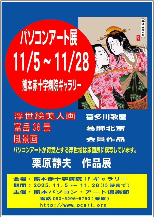 | 熊本パソコン・アート倶楽部は、熊本日赤病院 で作品展を開催することになりました。 | |||||||||||||